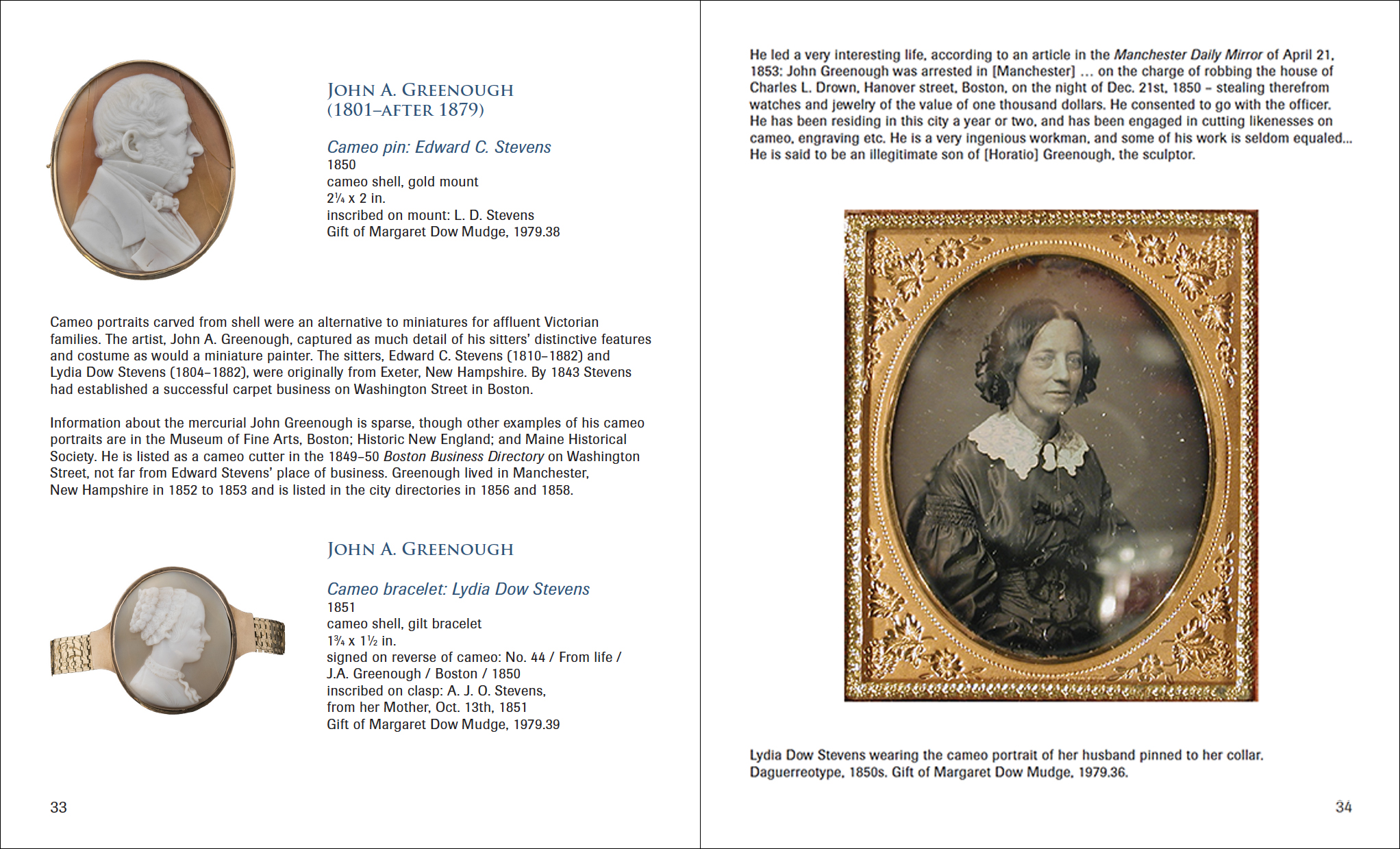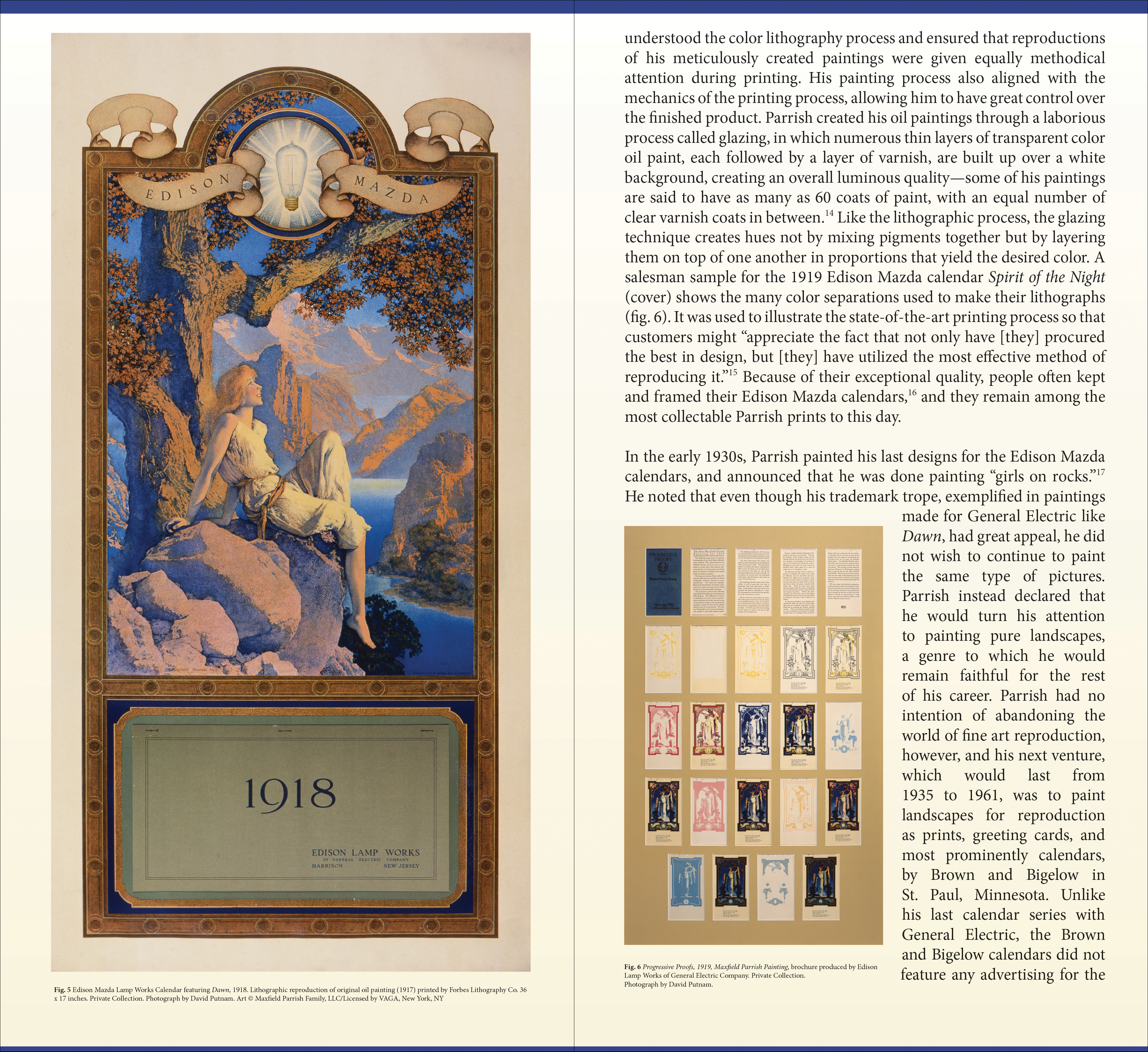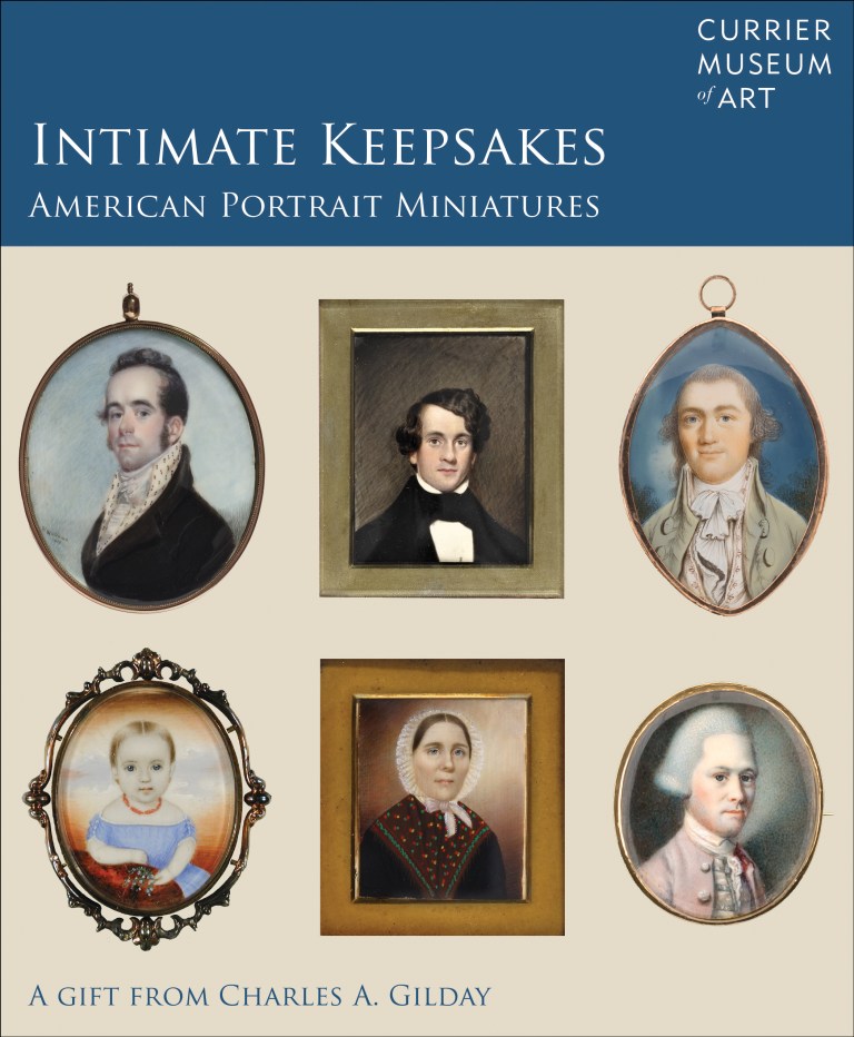 Select pages from the exhibition catalogues for Intimate Keepsakes: American Portrait Miniatures, Daniela Rivera: Labored Landscapes (where hand meets ground), and Maxfield Parrish: The Power of the Print.